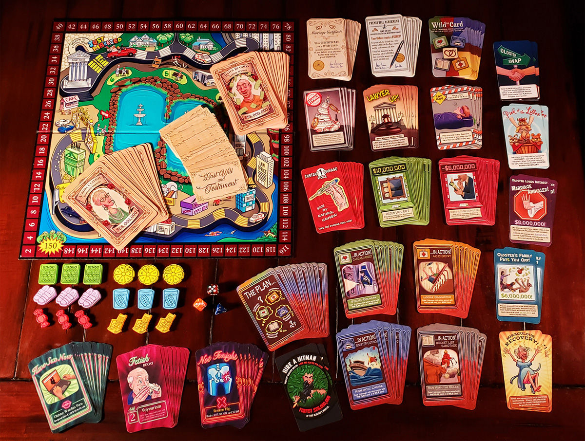While you're scheming to get your rich OLDSTER to the boneyard as quickly as possible, your golddigging opponents are doing the same – while also looking for ways to keep YOUR OLDSTER alive and kicking and getting poorer by the day!